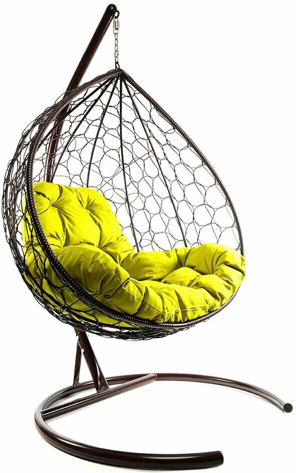 Подвесное Кресло-Капля с ротангом Коричневое с Зелёной подушкой