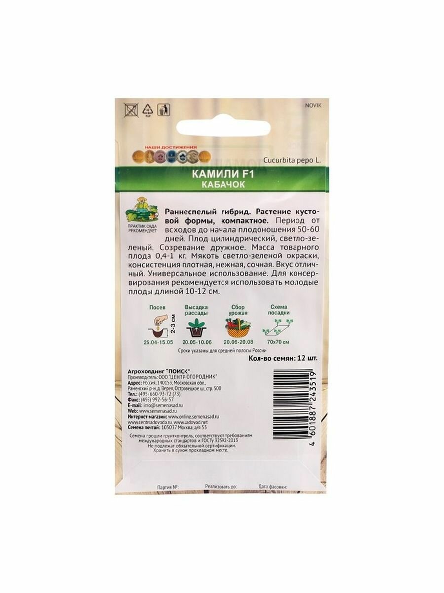 Ниже Вы можете прочитать отзывы на Кабачок Камили F1 12шт, ознакомится с подробными характеристиками, посмотреть интересные обзоры и фотографии на Кабачок Камили F1 12шт.