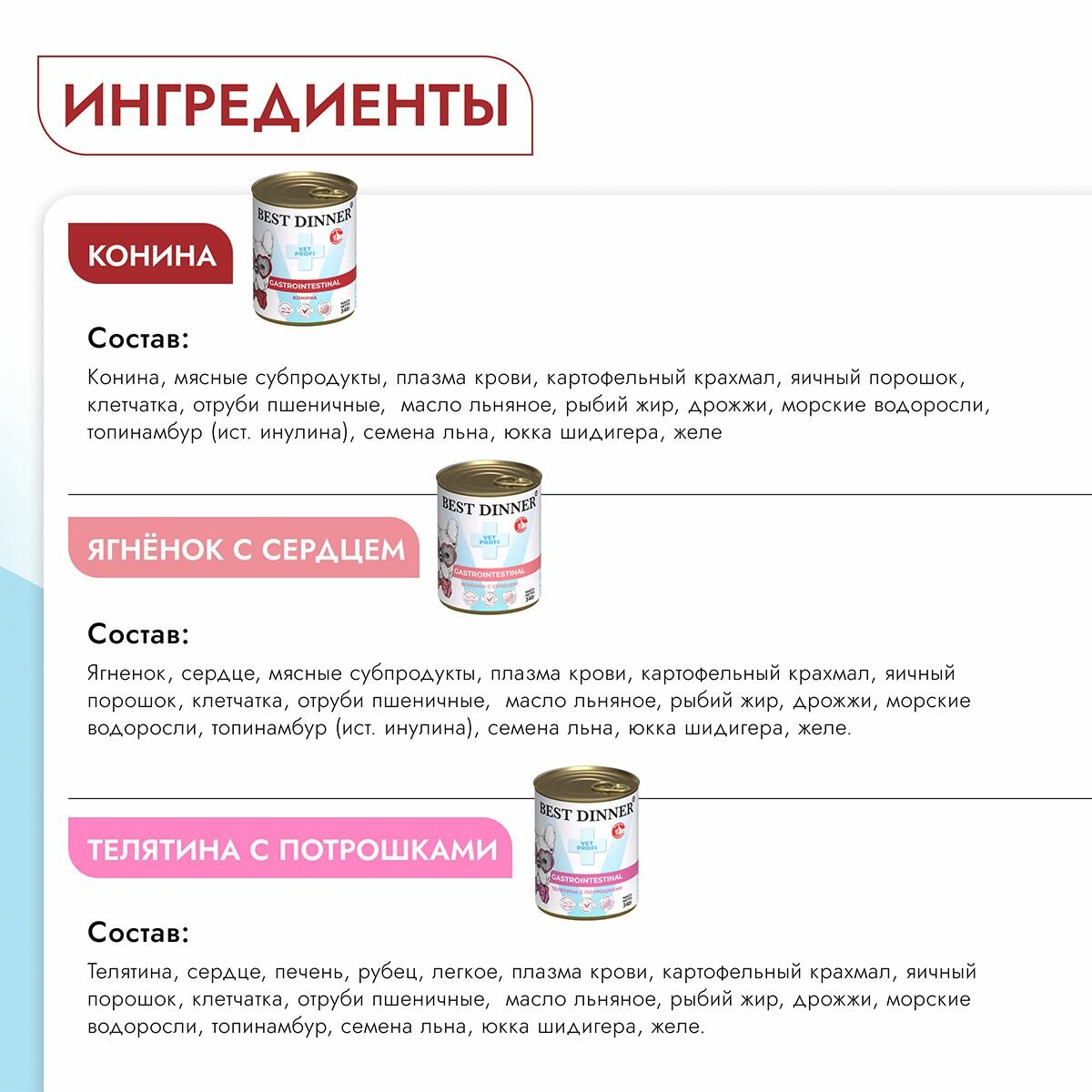 Best Dinner Vet Profi Gastro Intestinal Exclusive 12шт по 340г телятина с потрошками консервы для собак