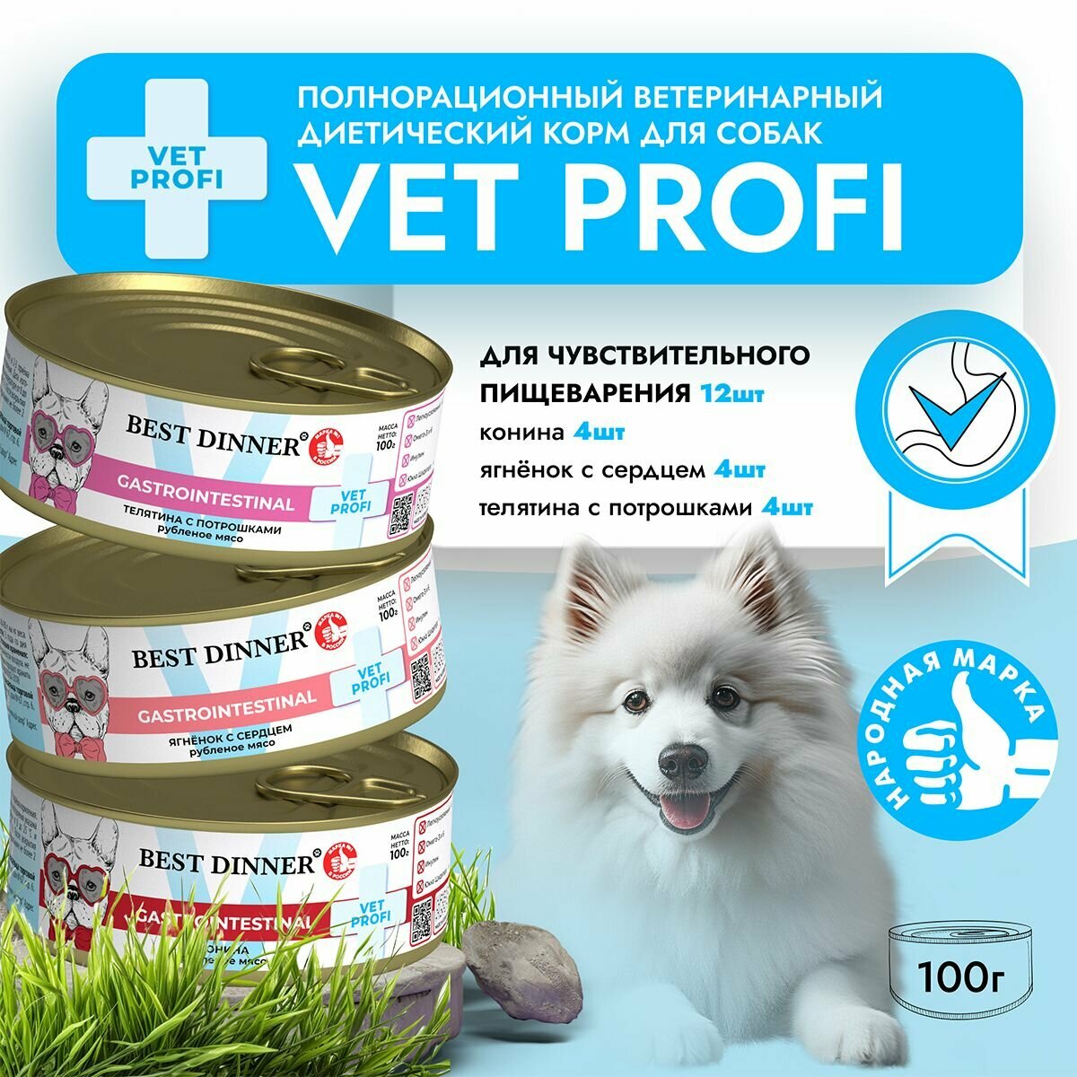 Купить Влажный диетический корм Best Dinner Vet Profi GastroIntestinal для собак при заболевании ЖКТ Ассорти (12шт х 100гр)