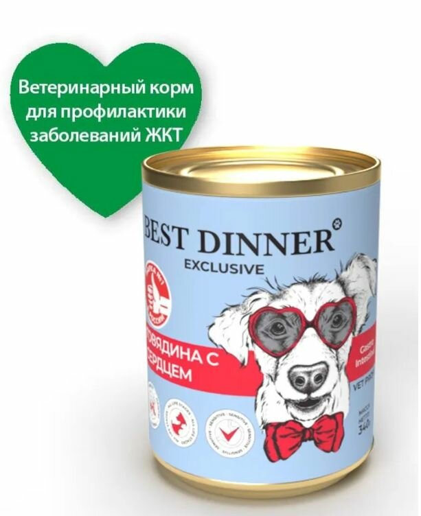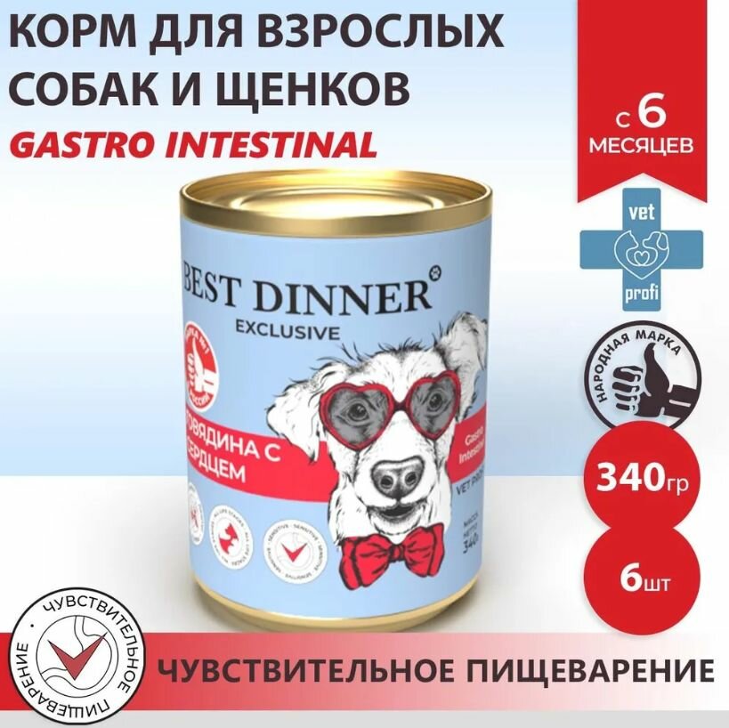 Купить Влажный корм для собак (консервы) Best Dinner Exclusive Vet Profi Gastro Intestinal Говядина с сердцем, 340 гр * 6 шт