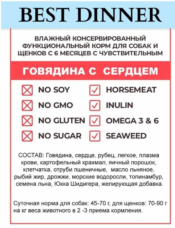 | Плюсы: | Собаке нравиться эти консервы |