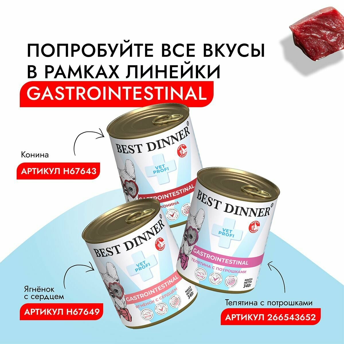 Best Dinner Vet Profi Gastro Intestinal Exclusive 12шт по 340г телятина с потрошками консервы для собак