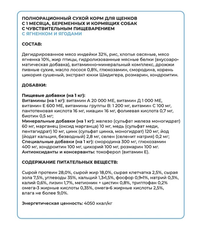 Корм сухой для щенков,кормящих и беременных собак мелких, средних и крупных пород супер премиум класса с ягненком и ягодами при чувствительном пищеварении, 3 кг Best Dinner (Бест Диннер)