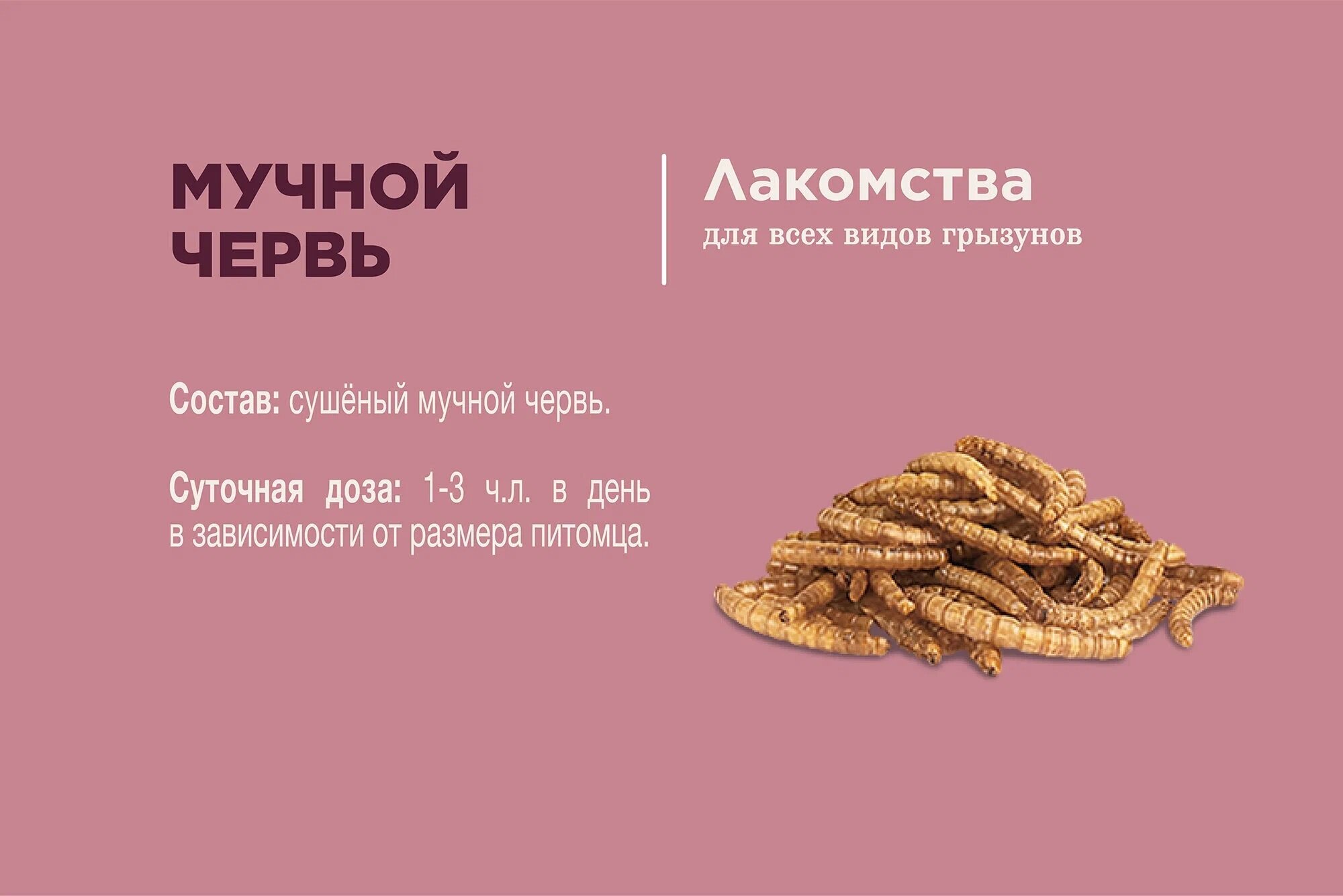 | Плюсы: | Хорошие червячки. Крыски едят с удовольствием. |
