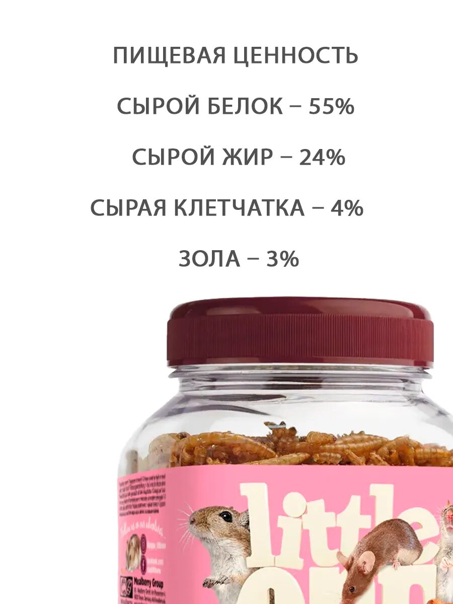 Little One "Мучной червь" Лакомство для всех грызунов 70 г, банка