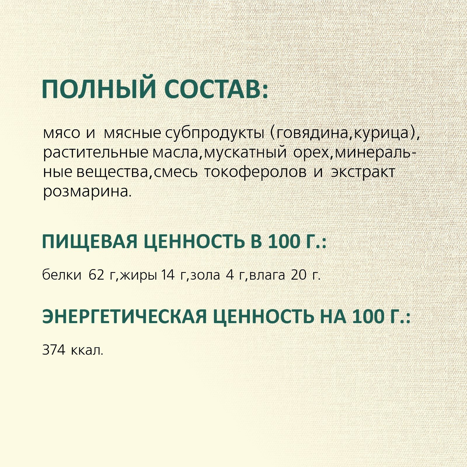 | Вкус | мясо |