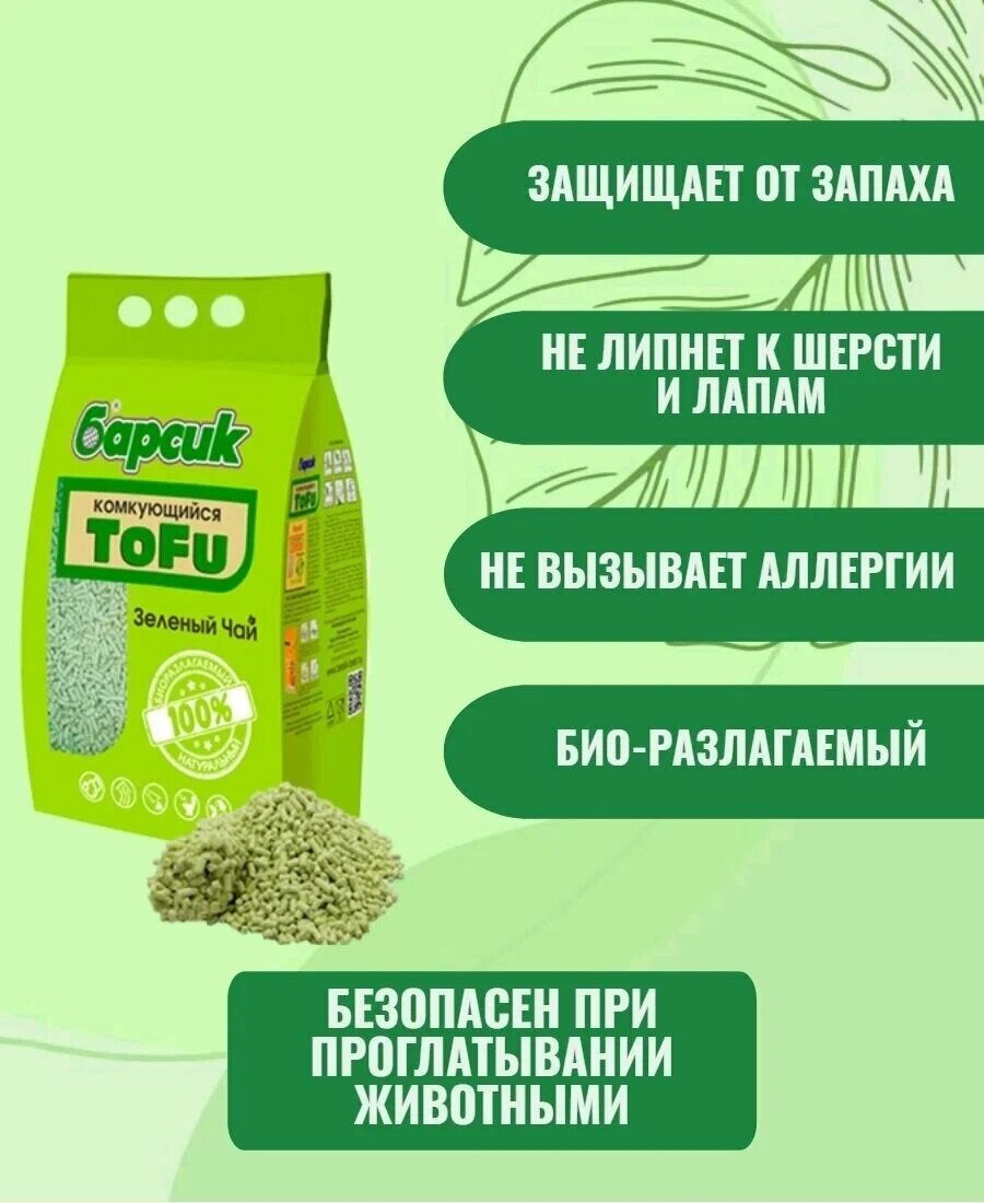 Комкующийся наполнитель Барсик Tofu Зелёный Чай, 4.5л, 1 шт.