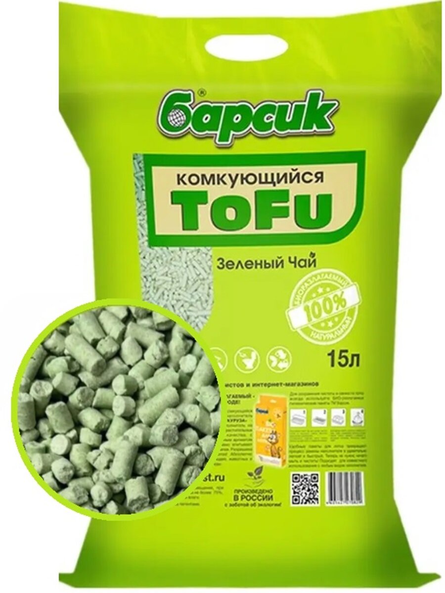 Ниже Вы можете прочитать отзывы на Натуральный комкующийся наполнитель для кошачьего туалета Барсик TOFU Зелёный Чай 15л, ознакомится с подробными характеристиками, посмотреть интересные обзоры и фотографии на Натуральный комкующийся наполнитель для кошачьего туалета Барсик TOFU Зелёный Чай 15л.