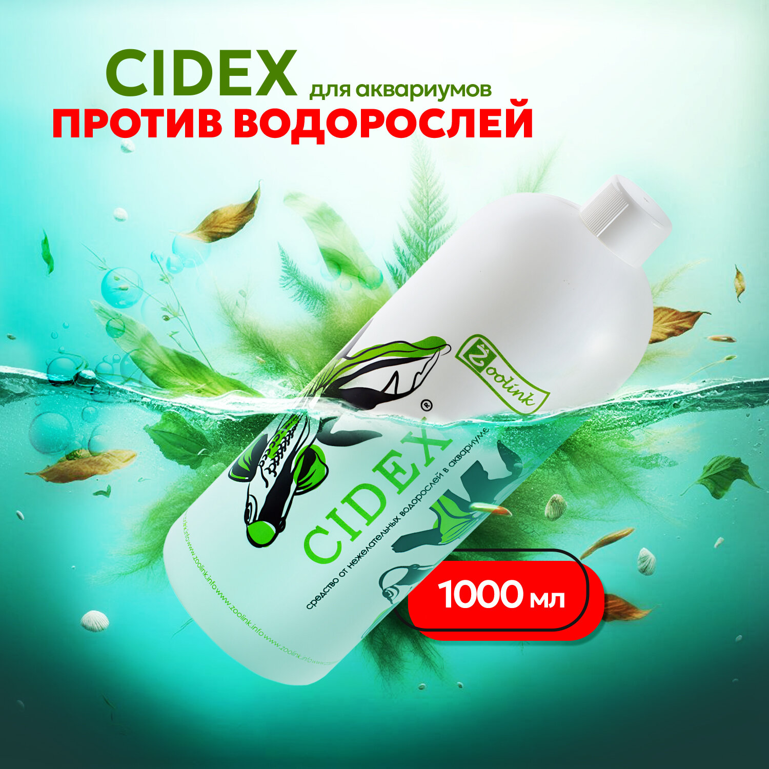 Купить Средство против водорослей в аквариуме Zoolink CIDEX 1 л ( Альгицид и CO2 против черной бороды, нитчатки и др )