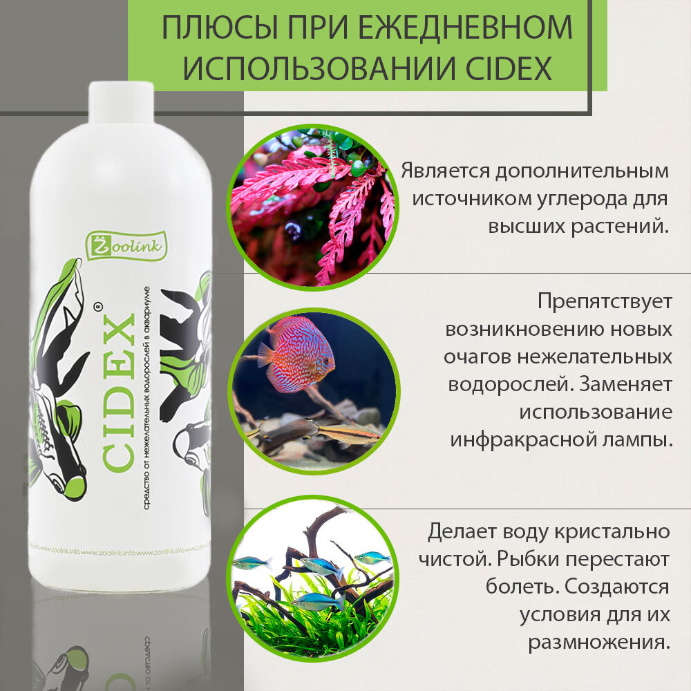 Средство против водорослей в аквариуме Zoolink CIDEX 1 л ( Альгицид и CO2 против черной бороды, нитчатки и др )