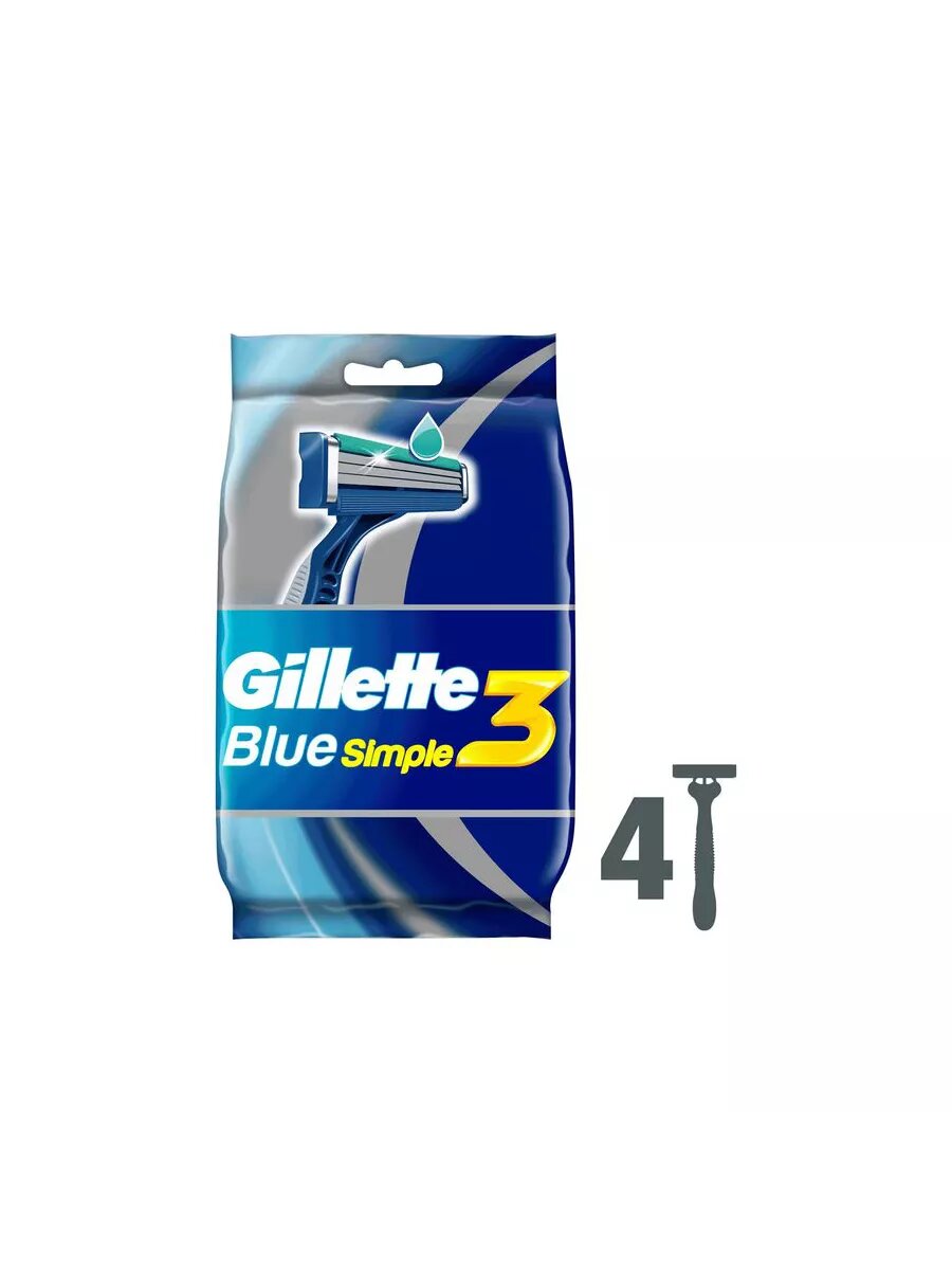 Бритвенные станки Gillette Blue Simple 3, одноразовые, 4 шт