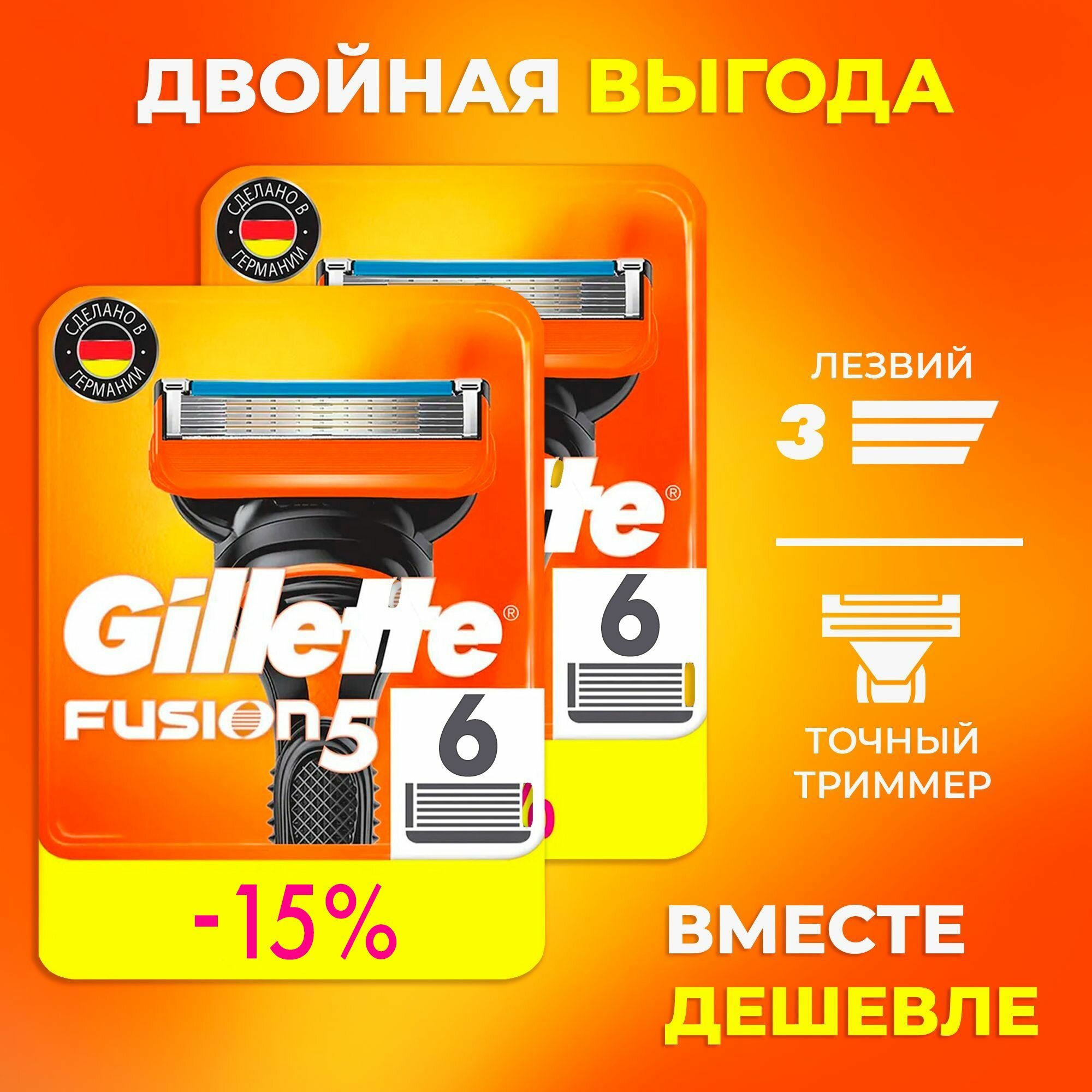 GILLETTE Fusion 5 Сменные кассеты для бритья с 5 лезвиями, мужские, 12 шт