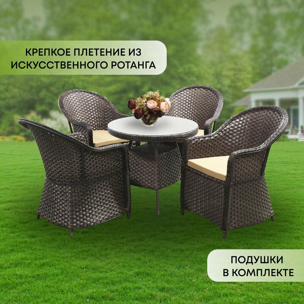 Набор мебели Green Days Эльба корич. стол 80x80x73+4кресла+подушка беж.