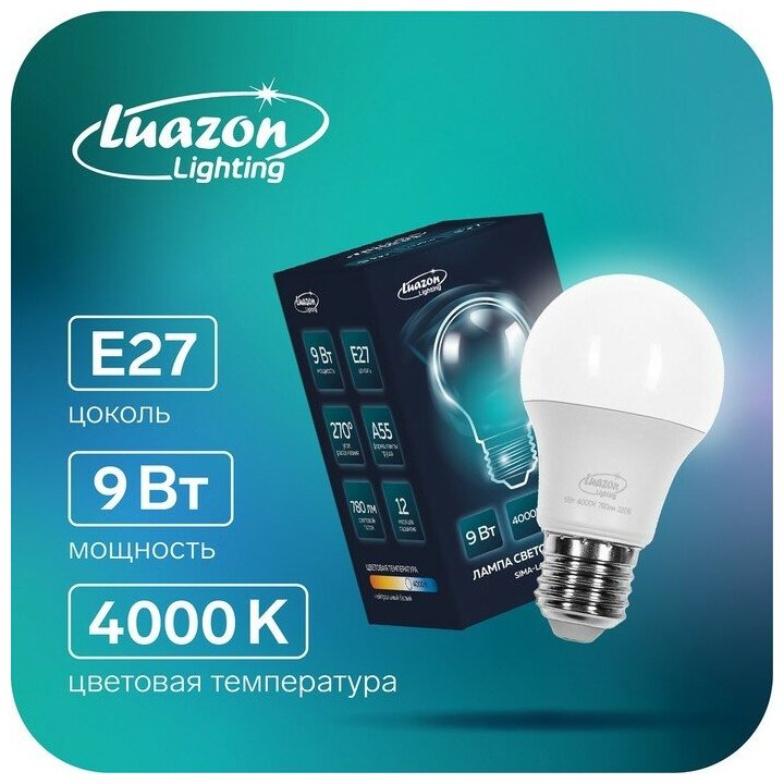 Лампа cветодиодная Luazon Lighting, A55, 9 Вт, E27, 780 Лм, 4000 К, дневной свет 5367536 интересное:
