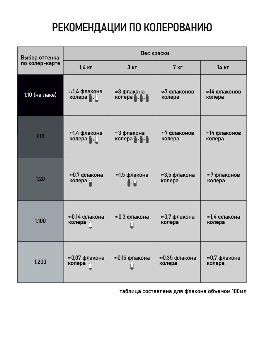 Колеровочная паста коллекция цв. серый 0,1л бутылка ПЭТ