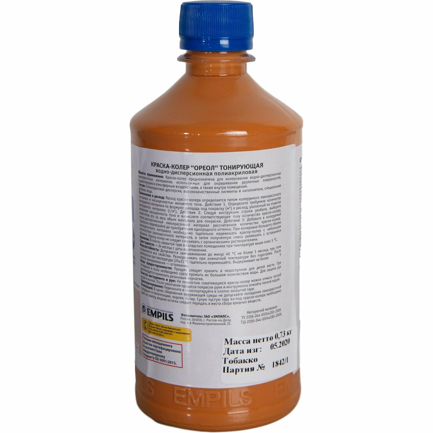Колер краска Ореол янтарь 730 г, оранжевый, Россия