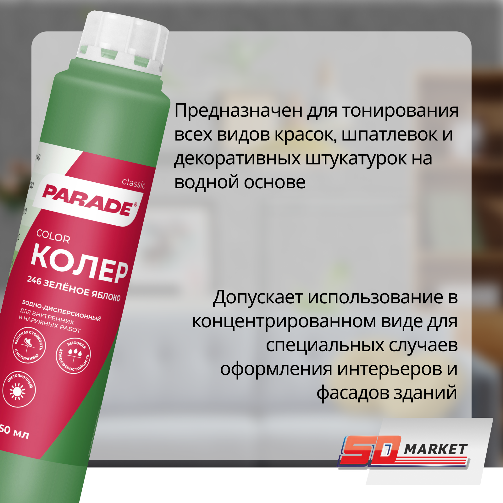Колер для краски Parade CLASSIC, 246 зеленое яблоко, 0.25 л