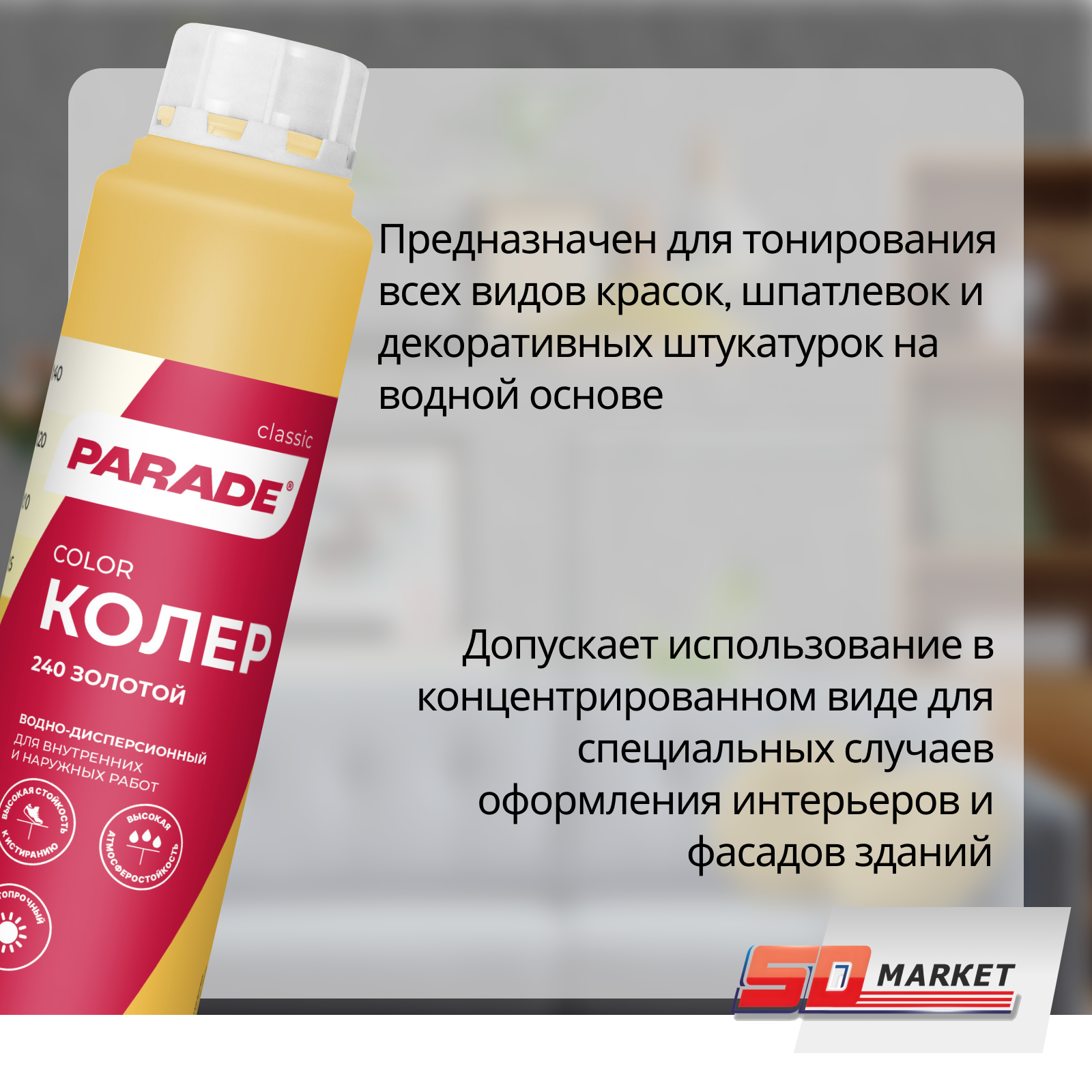 СохранитьКолер для краски Parade CLASSIC, 240 золотой, 0.75 л интересное: