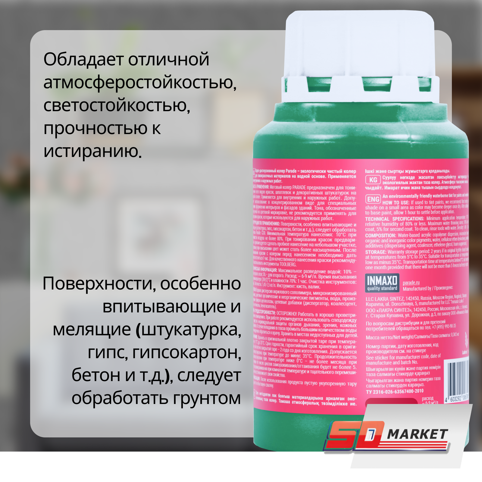 Паста колеровочная parade 213 0,75л темно-зеленая