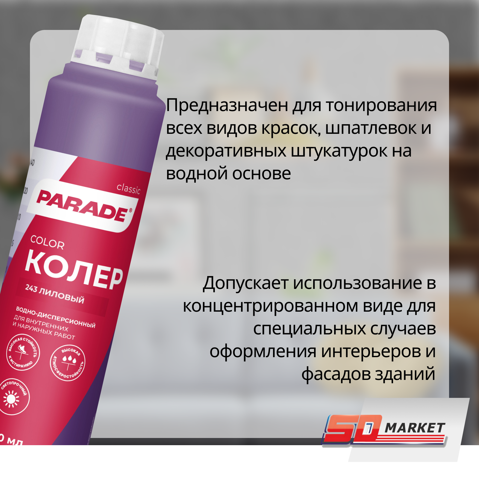 СохранитьКолер для краски Parade CLASSIC, 243 лиловый, 0.75 л интересное: