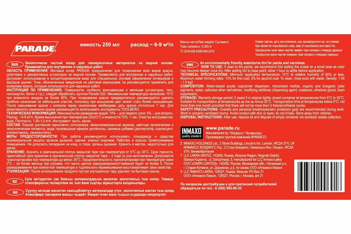 PARADE Колер №245 Синий 0,75л Россия 90001421816