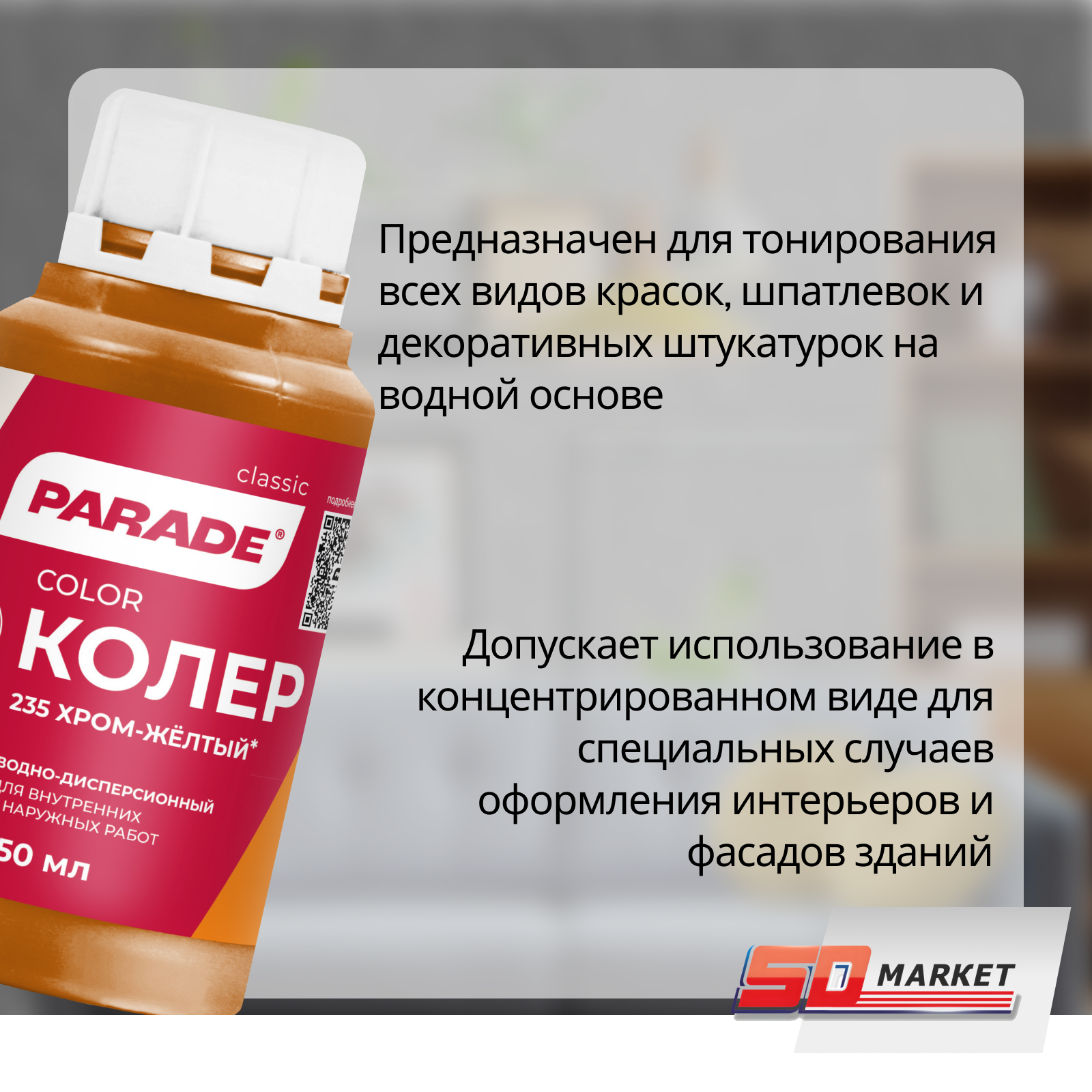 Купить Колер для краски Parade CLASSIC, 235 желтый хром, 250 мл