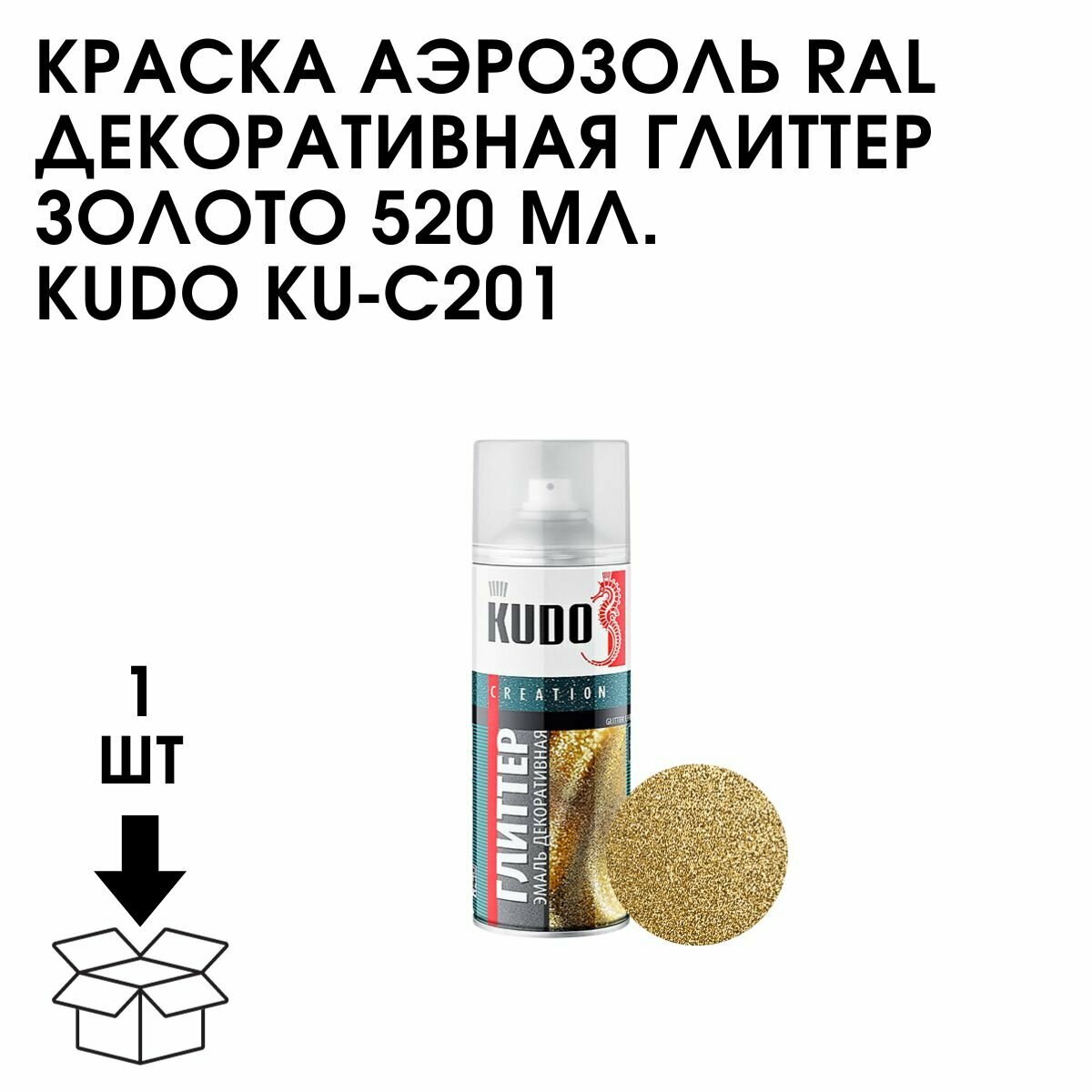 Аэрозольная акриловая краска металлик Kudo KU-C201 Глиттер, 520 мл, золото