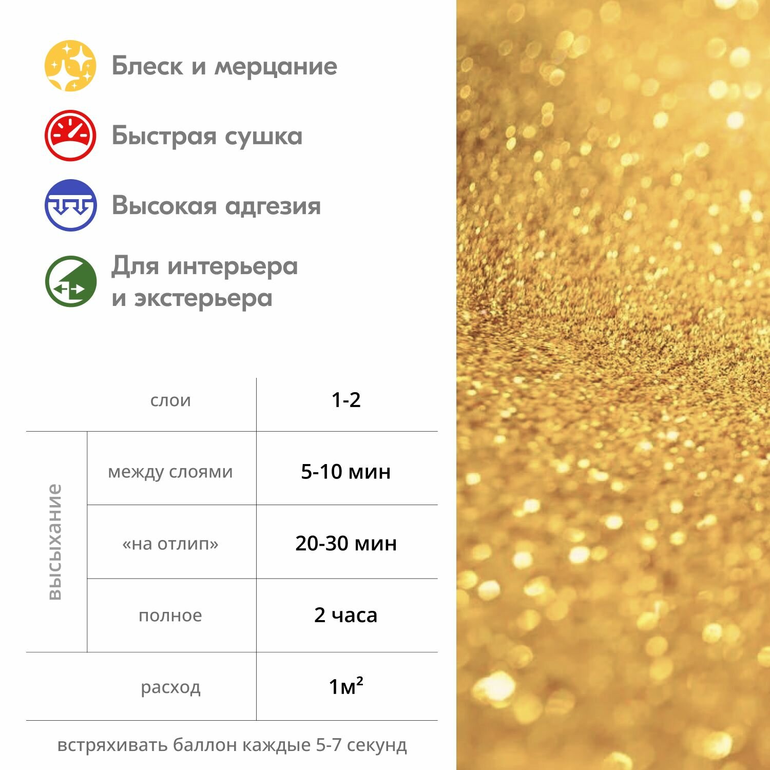 Эльф Филлинг ЗАО Аэрозольная акриловая краска металлик Kudo KU-C201 Глиттер, 520 мл, золото