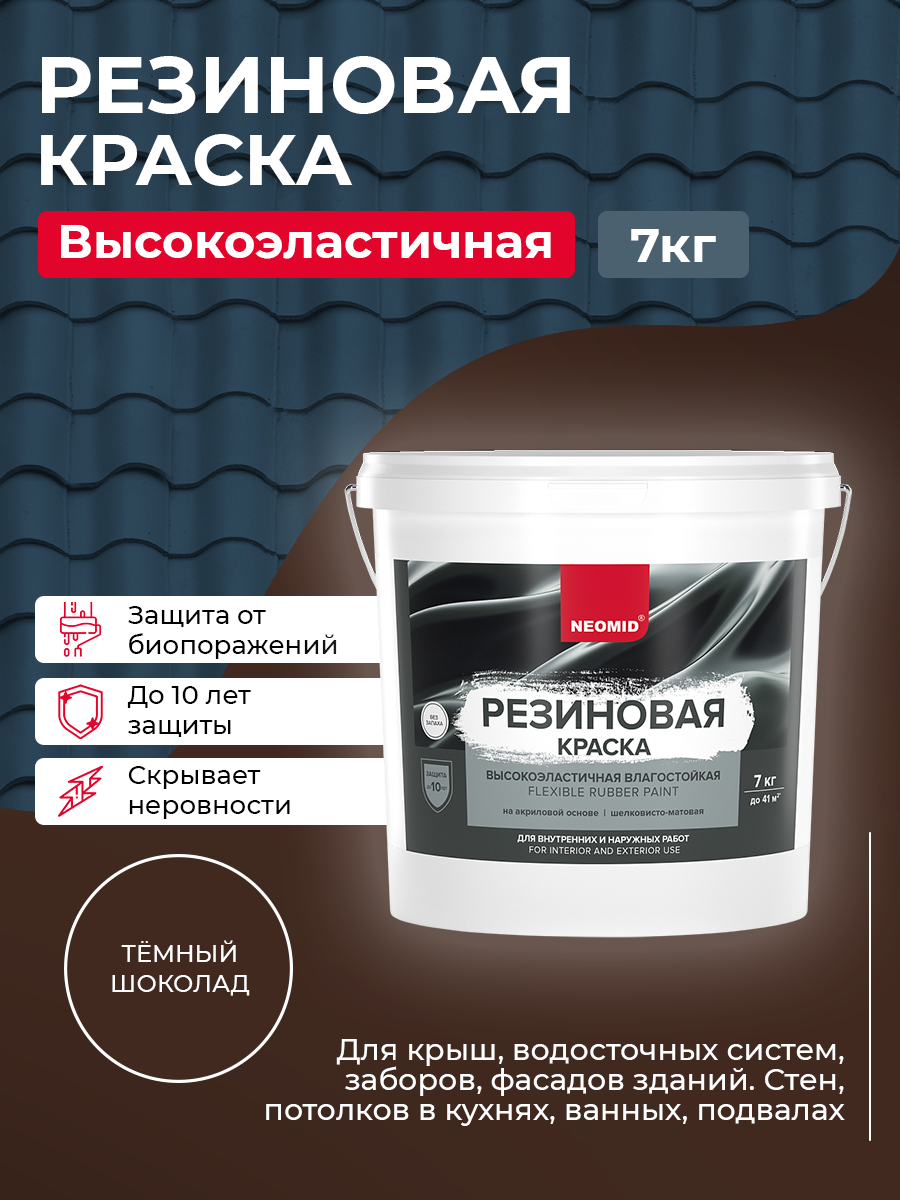 Ниже Вы можете прочитать отзывы на Резиновая краска Neomid Темный шоколад - 7 кг, ознакомится с подробными характеристиками, посмотреть интересные обзоры и фотографии на Резиновая краска Neomid Темный шоколад - 7 кг.