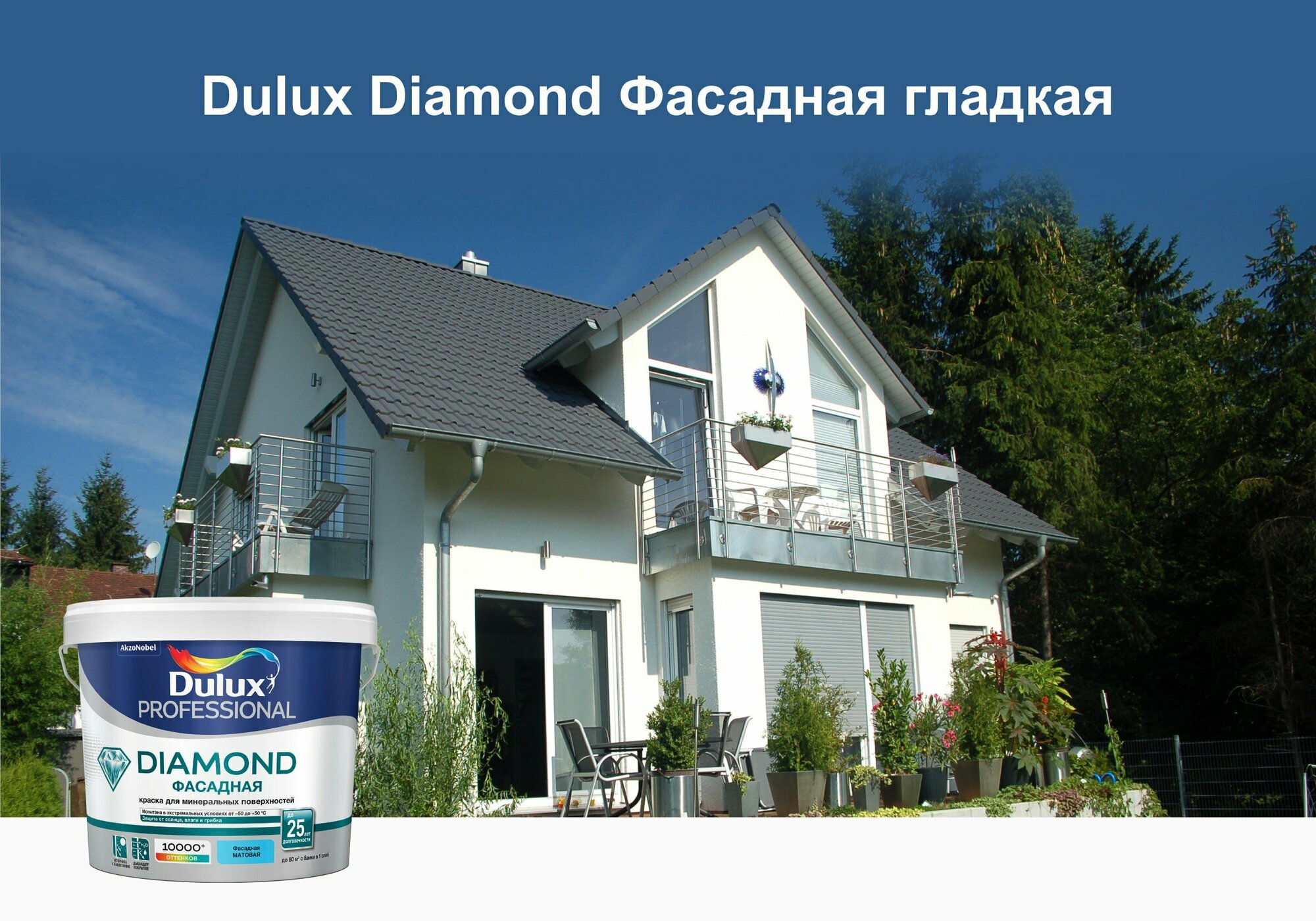 DULUX DIAMOND фасадная краска для минеральных и деревянных поверхностей, мат., база BW (9 л)_NEW