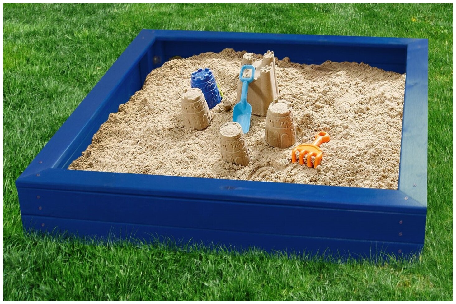 Детская деревянная песочница на улицу окрашенная, цвет синий