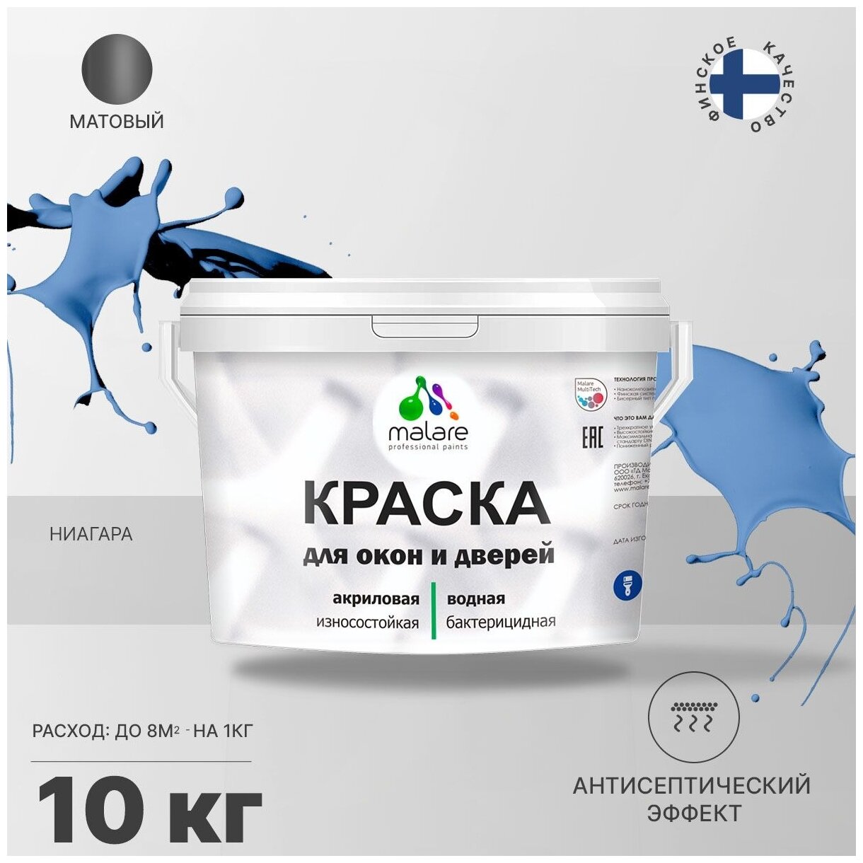 Купить Акриловая краска для дверей и окон Malare Latex по дереву с антисептическим эффектом/ быстросохнущая моющаяся без запаха матовая, ниагара, 10 кг.