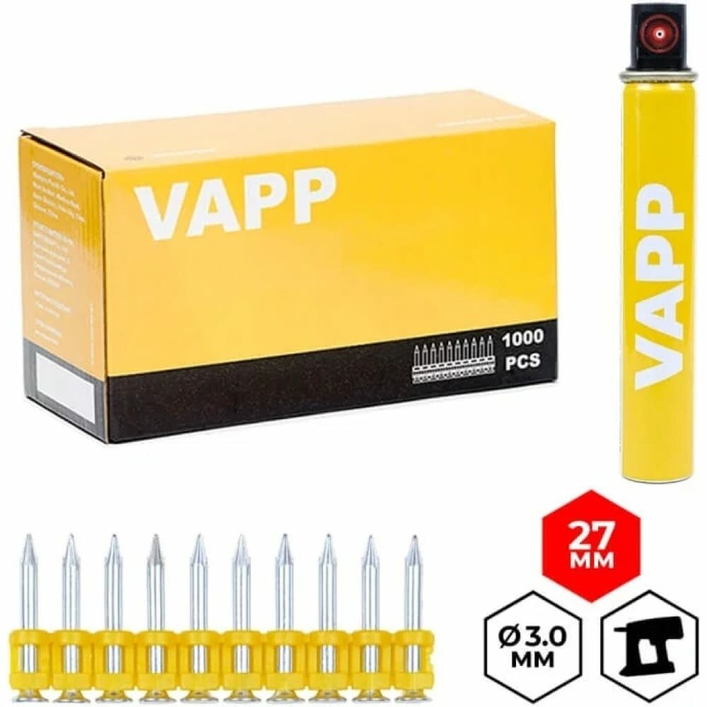 Купить VAPP Гвозди по бетону 27x3 мм усиленные для монтажного пистолета с газовым баллоном 165 мм VAPP.G-CN327