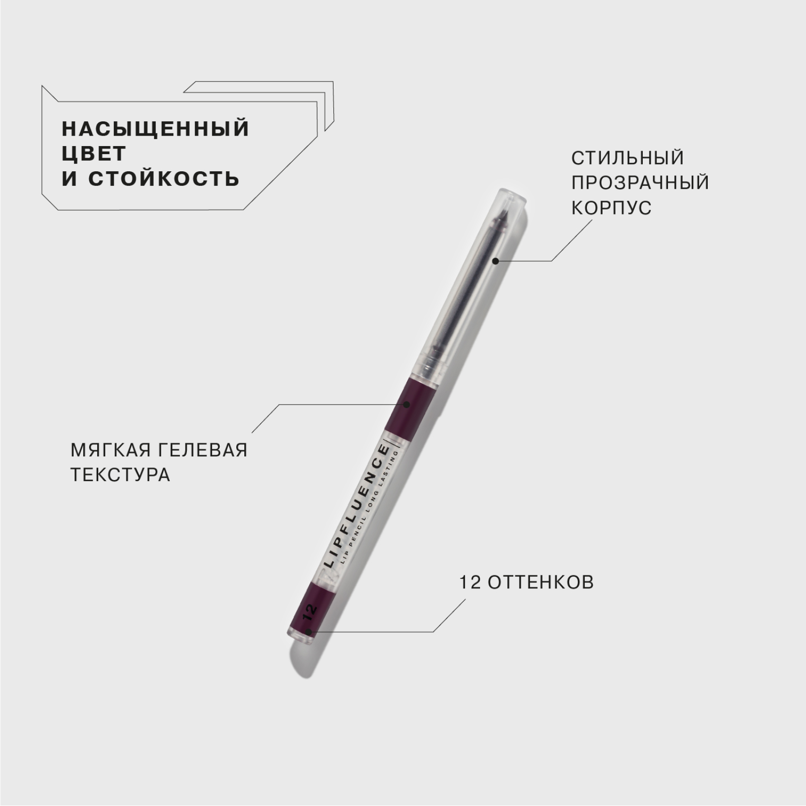 Купить INFLUENCE BEAUTY Карандаш для губ автоматический Lipfluence стойкий, 0,28 г, 12 Сливовый