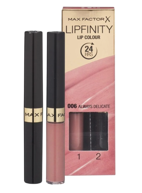Max Factor Набор для макияжа губ Lipfinity 24 HRS Lip Colour + Top Coat стойкая, оттенок 006 ALWAYS DELICATE