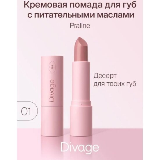 Divage / Диваж Губная помада Praline тон 01 Sugar Babe, кремовая текстура 3г / декоративная косметика