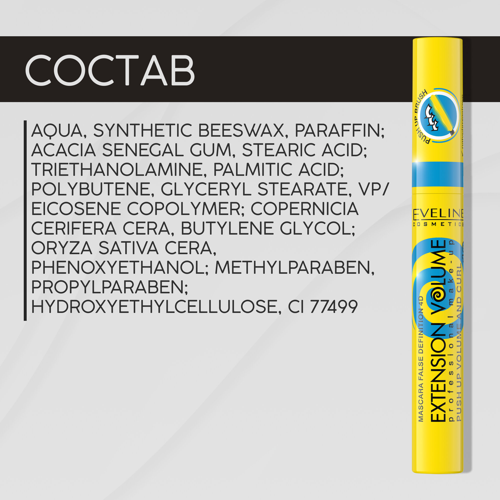 Тушь для ресниц EVELINE EXTENSION VOLUME эффект Push-Up!, черная, 10 мл