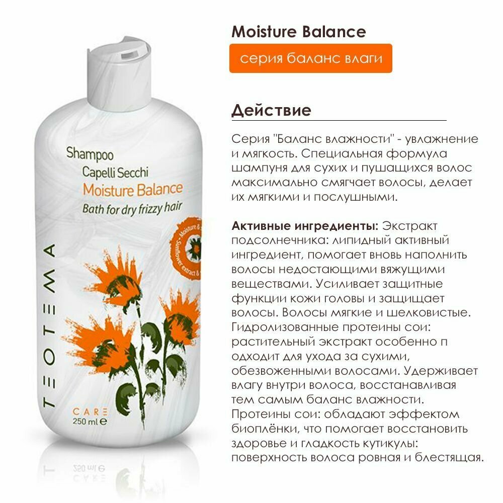 Купить Шампунь для сухих и пушащихся волос профессиональный Teotema увлажняющий баланс влажности, 250 мл