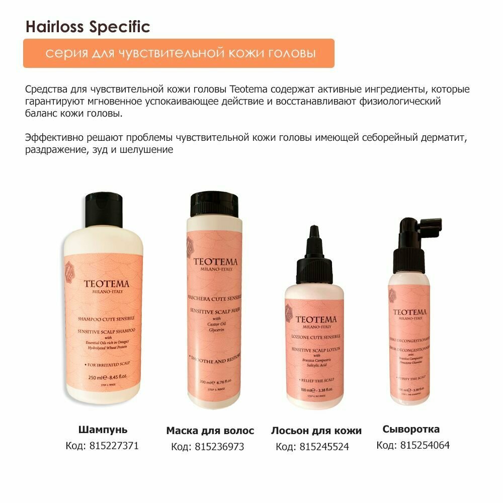 Купить Шампунь для чувствительной кожи головы успокаивающий Teotema от себореи раздражения зуда шелушения 250ml
