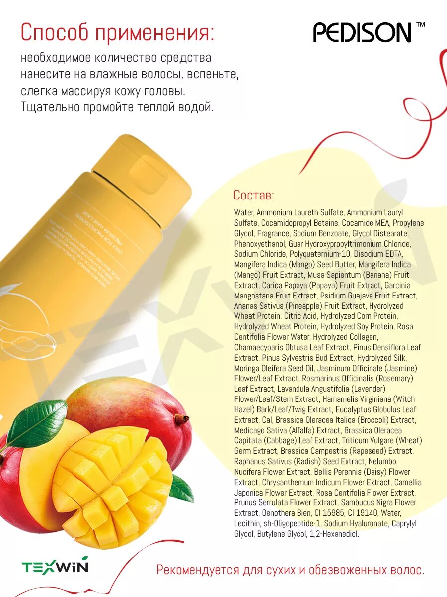 PEDISON Шампунь для волос манго. Institute-Beaute Mango Rich Protein Hair Shampoo, 100 мл.