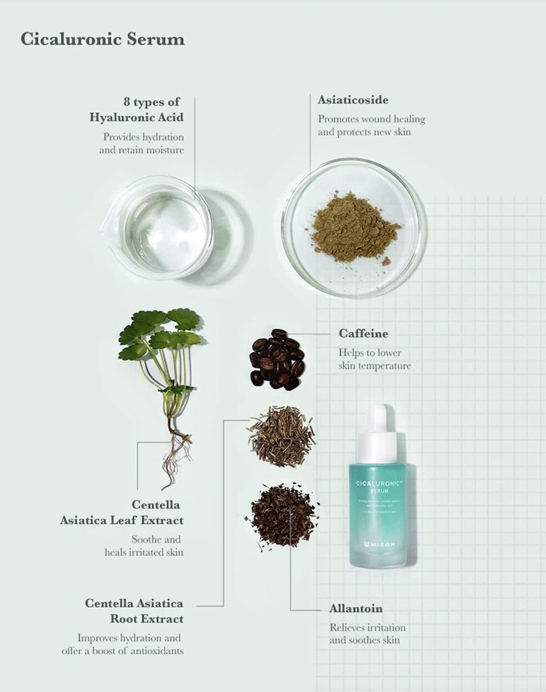 СохранитьMIZON CICALURONIC SERUM Сыворотка с экстрактом центеллы азиатской и гиалуроновой кислотой 30мл интересное: