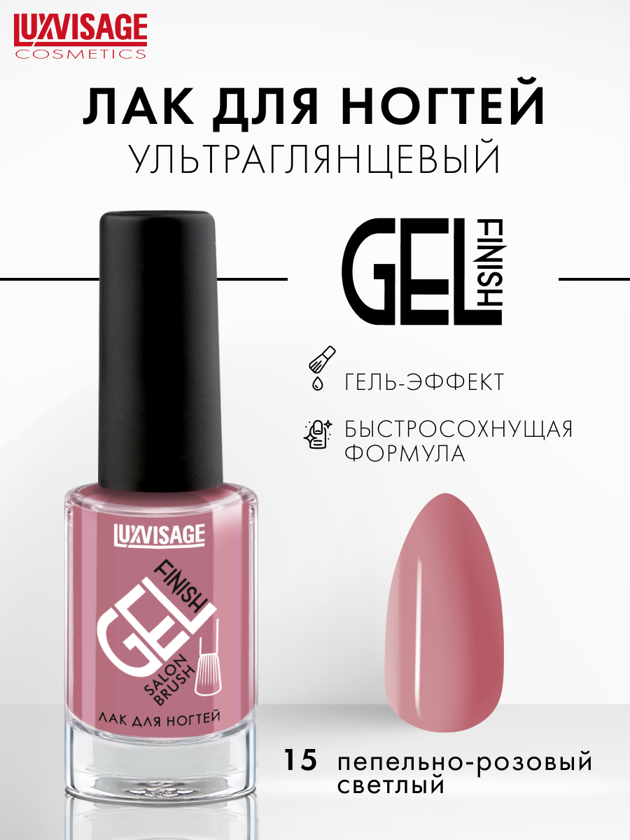 Лак для ногтей LUXVISAGE, GEL finish, Темный пепельно-розовый, стойкий, ультра глянцевый, тон 14, 9 гр