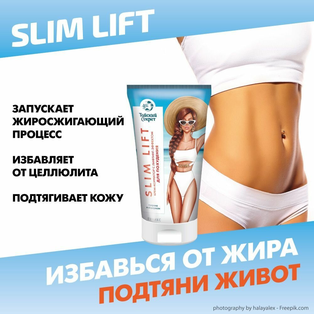 Asia Spa. Крем для похудения Тайский секрет "Slim lift", от целлюлита, подтяжка кожи тела, жиросжигатель, гуарана и водоросли 150 мл