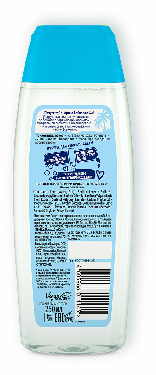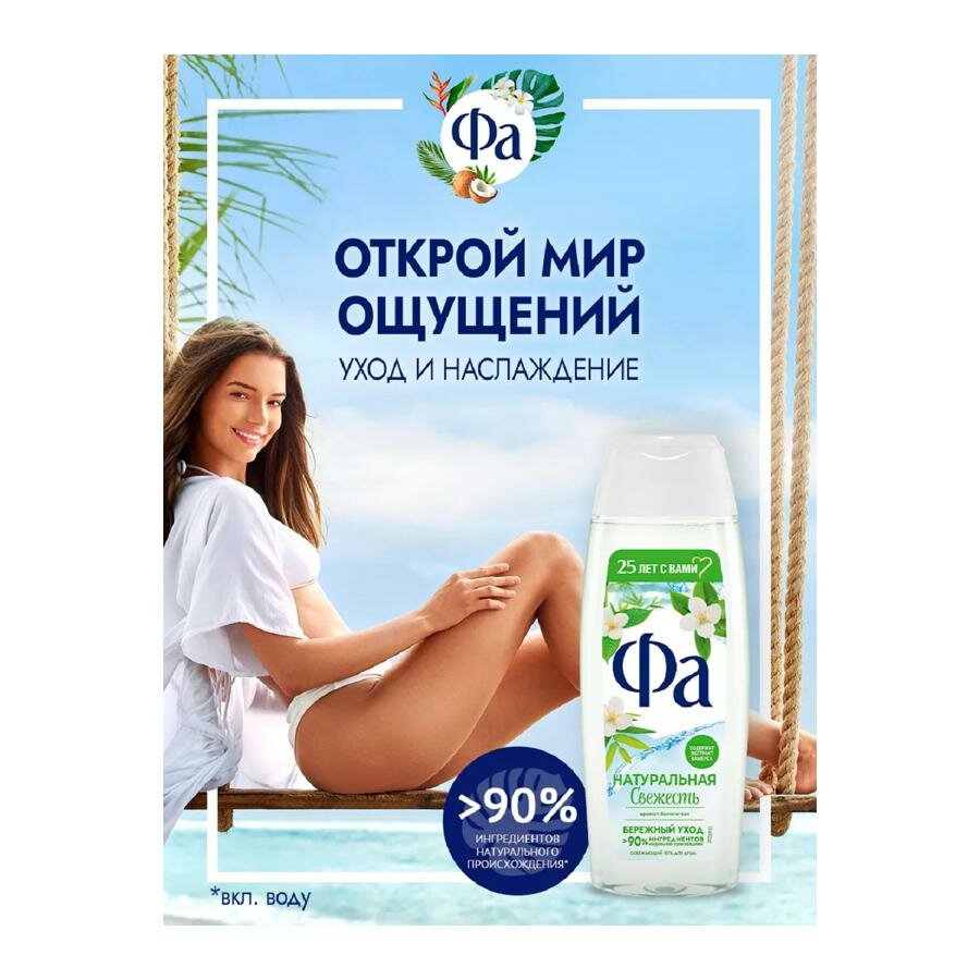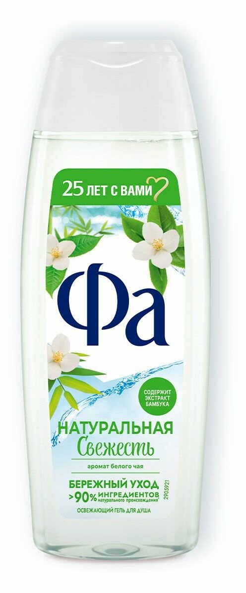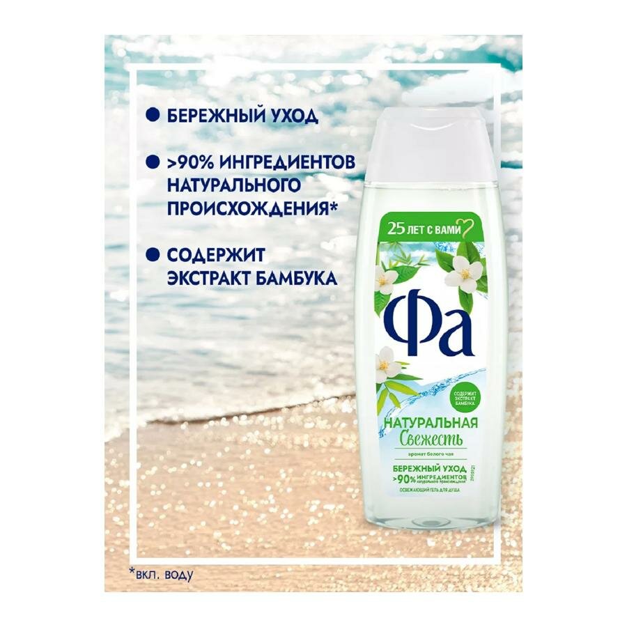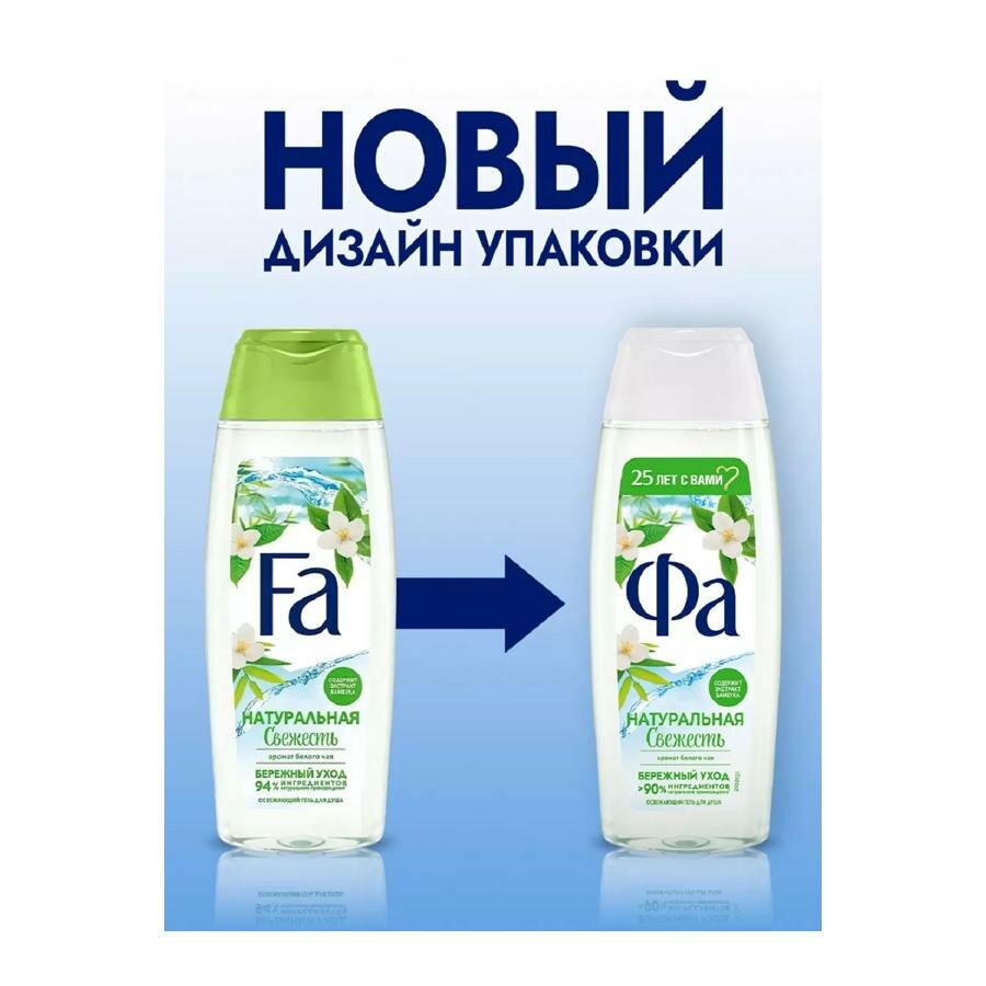 Фа Гель для душа женский Натуральная свежесть ухаживающий и освежающий с экстрактом бамбука и белого чая 250мл / без сульфатов и парабенов / в