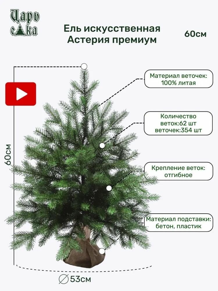 Елка новогодняя Царь Елка Астерия премиум высота 60, искусственная, литая хвоя, настольная