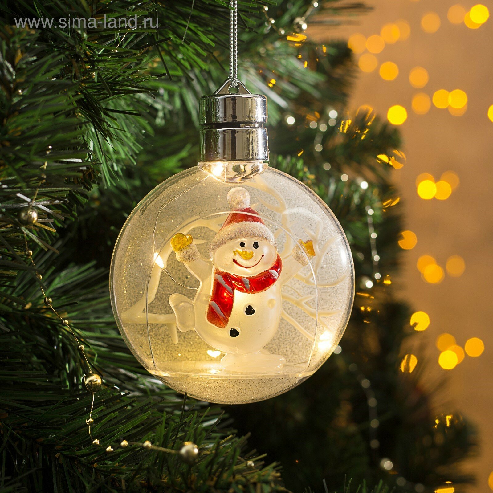Ёлочный шар Снеговик , батарейки, 5 LED, свечение тёплое белое