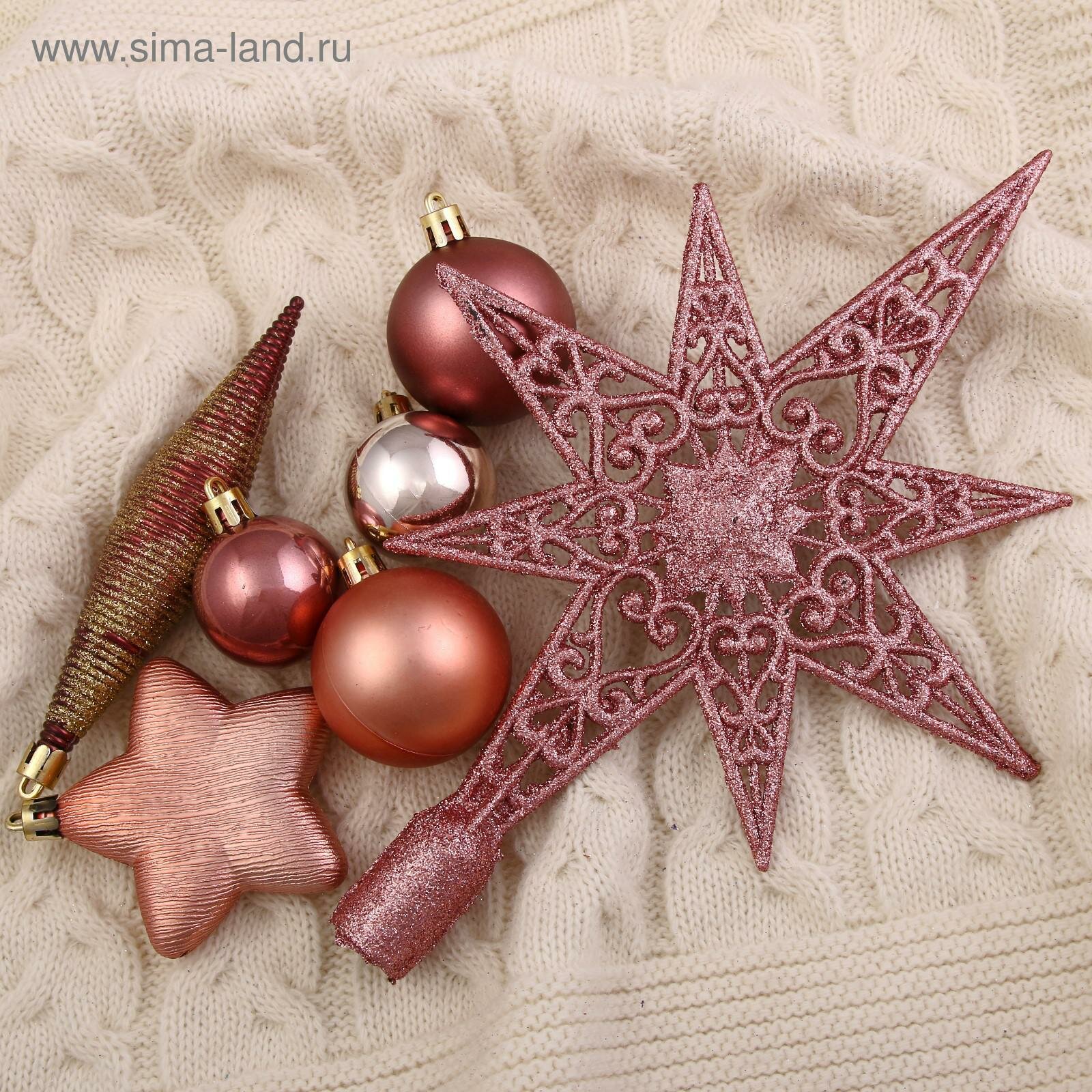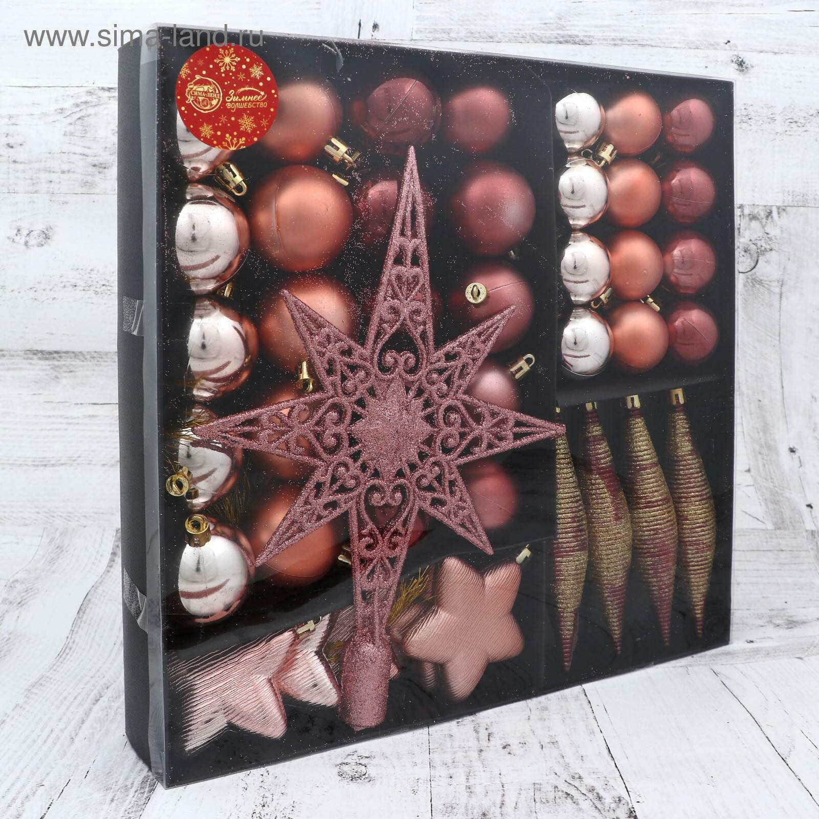 Набор елочных украшений Зимнее волшебство Глория 2, с верхушкой, 43 шт, розовый