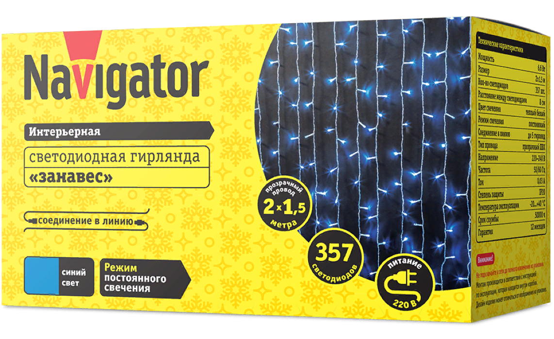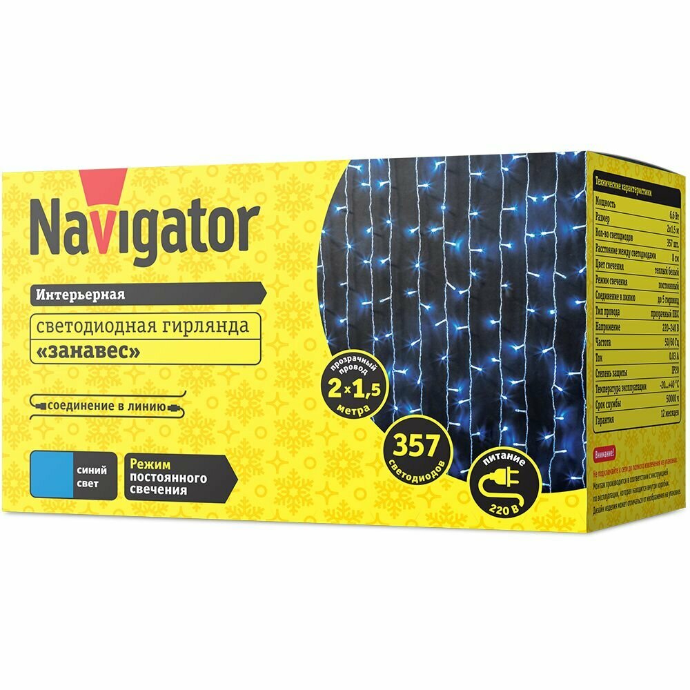 Гирлянда световой занавес Navigator 95 115, 5 х 2.5 м, синий свет, прозрачный провод, IP44