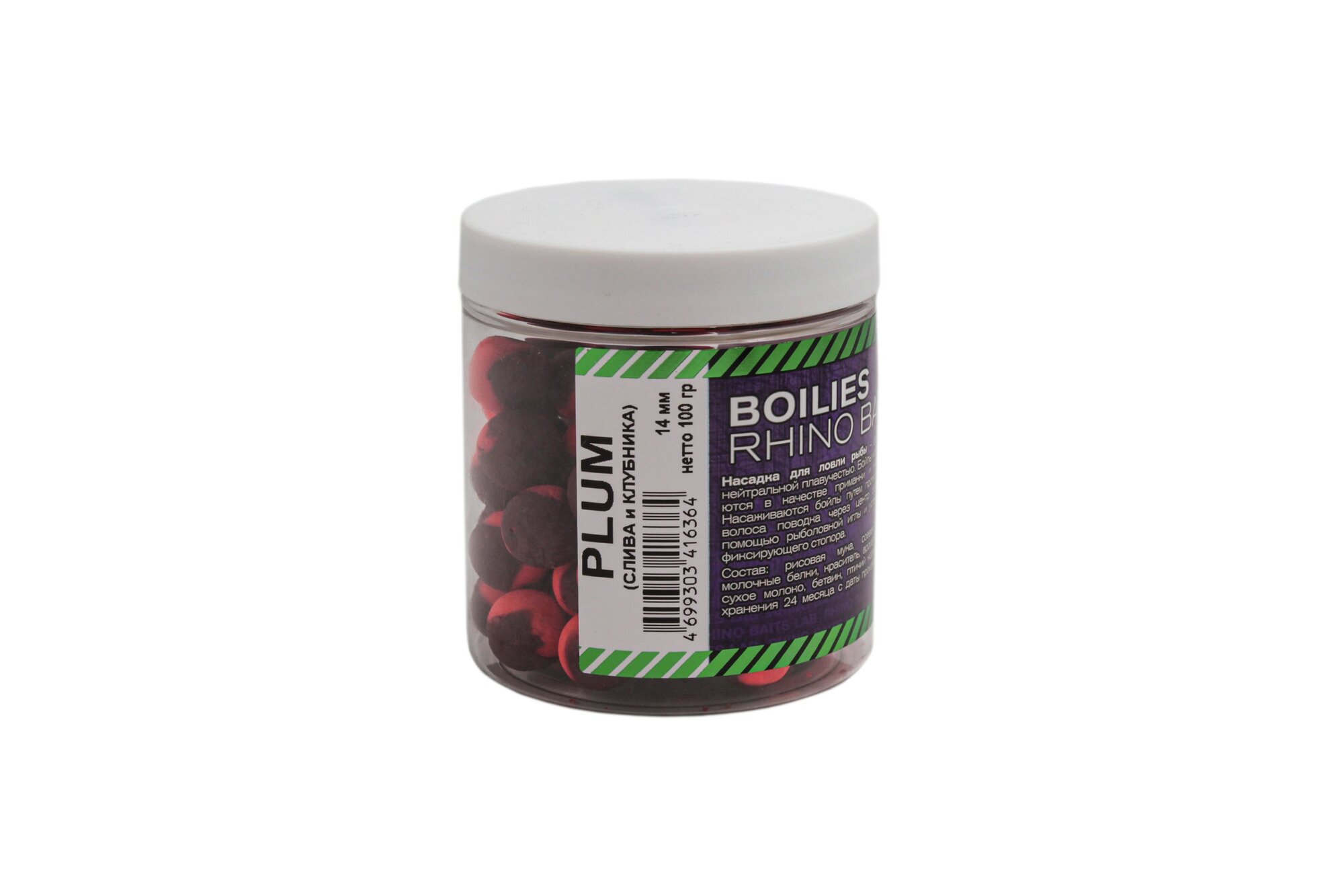 Купить WAFTERS вафтерсы Rhino Baits Plum двухцветные (слива и клубника), 14 мм, банка 100 гр прикормочные, закормочные варёные, Прикормка для карпа, Balanced.